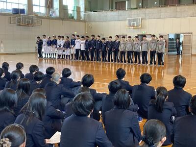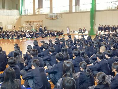 4月9日(水)、新入生240名が新たに富谷高校に加わり、2・3年生との対面式が執り行われました。在校生代表として生徒会長から歓迎の言葉があった後、生徒会執行部が富谷高校の紹介をしました。
