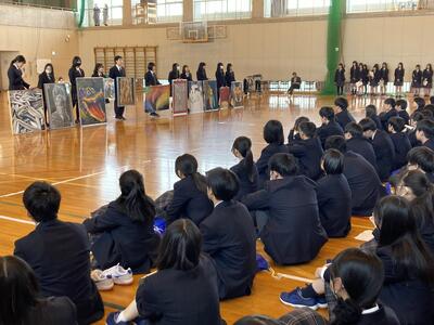 日常の学習活動や、生徒一人ひとりの考え方や行動が、地域社会だけでなく世界の人々の生活の改善改良に繋がっていることを理解した1時間となりました。生徒の皆さんからは、「3年間かけて、世界の諸課題であるSDGsの解決に貢献できることがわかった」「正解はないので、私たちが考えること、考え続けることが大切」「自分たちが自分たちのフィールドで、学んで、考え、行動していく」などの力強い感想がありました。