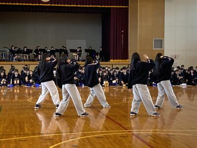 京劇では『覇王別姫』から虞姫の剣舞、『孫悟空』から悟空と白骨精の戦いのワンシーン、雑技は柔術、流星(ロープの先に錘をつけた武器)、ヘッドバランス、椅子芸などを鑑賞しました。京劇の華やかな衣装と独特の節回しや音楽、人間技とは思えないアクロバティックな妙技の数々、瞬時に次々変わる面など、日頃目にすることのできない興行の数々に、あっという間の90分でした。演者の方が客席に下りてきて握手をしたり、チャレンジコーナーでは生徒が雑技やコミカルショー、京劇のワンシーンに参加したりするなど、客席と一体となった親しみのある会となりました。また、多くの保護者の皆様も鑑賞していただきました。