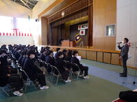 1月31日(火)6校時に,2学年全員を対象に『主権者教育に関する講演会と模擬投票』を行いました。宮城県選挙管理委員会の堀口陽平様,阿部和将様を講師として,選挙の仕組みや選挙の際に注意すべき点などを講演していただきました。その後,実際の投票用紙や投票箱を用いて模擬投票を体験しました。