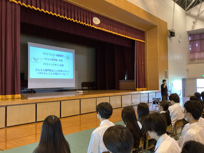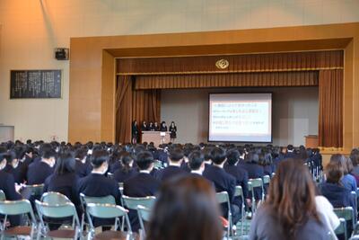 講演を聴いた生徒からは、「より良い課題設定をするためには問題と課題をうまく区別することが大切だと分かった。問題の本質を捉えることで、解決するべき課題を明確にし、課題設定における『根本』というものに気付くことができると学んだ」や、「3種類の『地域を見る目』を今後の課題研究に活かしたい」、「宮城大学の学生の方の話がとても印象に残った。沢山の経験を積んでいくことが大切だと改めて実感した。発表をするときは失敗を恐れずに、課題研究に全力で励みたいと思った」といった感想が多くあり、課題研究への前向きな姿勢が養われました。
