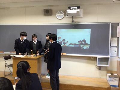 3月20日(月)に収穫祭予選が行われました。各グループが1年生教室で発表し,1年生と教員審査員が審査をしました。約半年をかけて取り組んできた研究を発表する集大成の場となりました。緊張感が漂う中,質疑応答では1年生から積極的に質問がなされ,充実した発表会となりました。