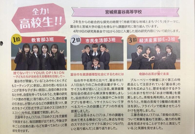 本校30回生の課題研究発表会「収穫祭」で入賞した3チームが、JA新みやぎの広報誌『新みやぎのわ・わ・わ』の取材を受け、その記事が掲載されました。各チームの研究概要や活動写真、代表者のコメントが紹介されています。