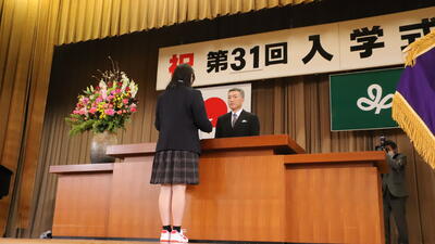本日入学したみなさんの高校生活が、いくつもの挑戦といくつかの失敗を繰り返し、それが大きな成長に結実できる充実した3年間になることを、職員一同、心から願っています。