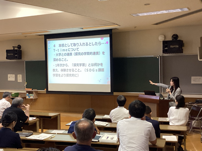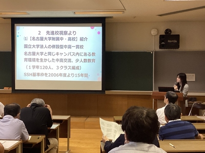 令和6年度の学校自主研修事業(特色ある学校づくり)の一環として、2名の教員が愛知県の教育先進校である名古屋大学附属中・高等学校と愛知教育大学附属高等学校を視察し、その報告を受けて探究学習について校内研修会を実施しました。