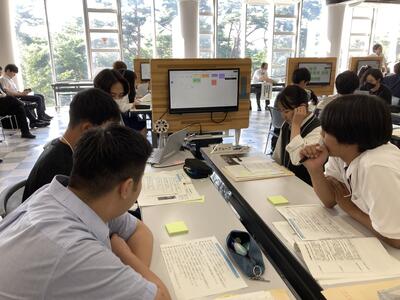 ワークショップでは、グループごとに富谷市の現状(良いところや課題)を話し合う時間がメインとなりました。各グループとも積極的な意見交換が行われており、本校生徒もそれぞれのグループ内で唯一の10代として、緊張しながらも年配の方の意見に耳を傾けたり、高校生としての立場で意見を発表したりしていました。