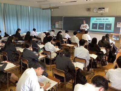 9月26日(木)の5・6校時に、1学年を対象としたESD講演会(理数分野)が開催されました。今回の講演では、持続可能な社会を目指すための研究や活動に焦点を当て、各クラスでの講演とディスカッションを通じて、生徒たちはESDに対する理解を一層深めました。