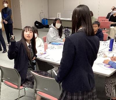 現在では、国や民族に関係なく子どもたちの幸せと安心して暮らせる未来づくりや子どもたちの成長を祝う目的として、「世界子どもの日」に認定され、国際デーの1つとなっています。ミーティングは「子どもにやさしいまちづくりについて」をテーマとし、富谷市内の小学生16人が意見交換を行うもので、富高生はミーティングのファシリテーターを務めました。富谷市の未来について小学生の児童たちならではの意見を聞き、本校の生徒たちにも良い刺激になったようです