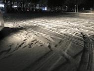私も今日歩いて通勤でしたが、足跡だけなく自転車の跡が1本ありました。こんな大変な日でも自転車で通学している生徒がいるようです。十分に気をつけて下さい!