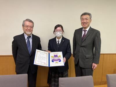 昨年末に開催された「富谷市社会福祉協議会~イメージキャラクター募集」において、一般の方々の投票により、本校1年:佐伯日菜子さんのキャラクター「ふくしん」が優秀賞を受賞し、12月19日(木)本校にて表彰式が行われました。おめでとうございました!
