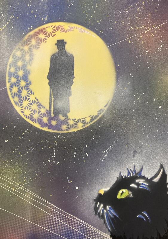 原画は、絵筆を持った手が黒い背景(壁)を突き破り、力強い筆跡を描いている様子が描かれています。創作活動に取り組む強い意志が伝わってくるようです。おめでとうございました!