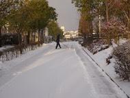 毎日朝5時半ごろに散歩に出かけますが、まだ夜明け前で街灯の明かりが頼りです。今朝はうっすらと雪が降ったところを散歩しました。
