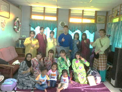 3日目はマレーシアに入国し,アブバカールモスクやマレー文化村での伝統舞踊を鑑賞,午後からは各班に分かれてホームビジット体験をしました。美味しいマレー家庭料理をいただいたり,子供たちとチョンカゲームで遊んだり,大変楽しい時間を過ごすことができました。