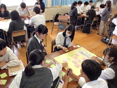 現在では、国や民族に関係なく子どもたちの幸せと安心して暮らせる未来づくりや子どもたちの成長を祝う目的として、「世界子どもの日」に認定され、国際デーの1つとなっています。ミーティングは「子どもにやさしいまちづくりについて」をテーマとし、富谷市内の小学生16人が意見交換を行うもので、富高生はミーティングのファシリテーターを務めました。富谷市の未来について小学生の児童たちならではの意見を聞き、本校の生徒たちにも良い刺激になったようです