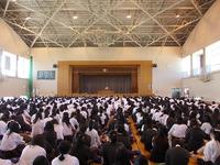 6月11日(木)5・6校時,平成27年度防災避難訓練と防災講演会が実施されました。今回は宮城県沖を震源とする地震を想定し,全校生徒と教職員がすみやかにグラウンドへ避難しました。その後体育館へ移動し,黒川消防署の阿部光浩氏をお迎えして防災講演会を実施しました。梅雨を迎えるあたり,水害や土砂災害等への心構えをお話し頂きました。