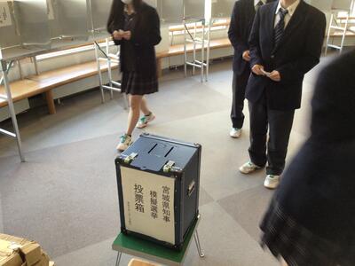 2月1日(木)6校時、2学年を対象に富谷市選挙管理委員会の村山様、阿部様を講師にお招きし、「新しい有権者のための選挙講座」と模擬投票を行いました。