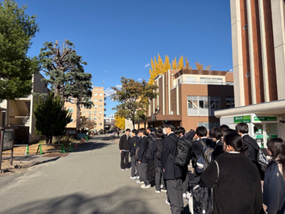 11月5日(水)、12日(水)に1年生のキャンパスツアーを実施しました。今年も3クラスずつに分かれて山形大学の小白川キャンパスを訪問しました。大学の概要説明や施設見学の他に、文系と理系に分かれて模擬講義も受講しました。