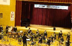 成田公民館まつりのオープニングコンサートに吹奏楽部が出演し,ファンファーレやマーチ,演歌,アニメの曲を披露しました。お客さんから手拍子や大きな拍手をいただき,楽しい雰囲気で演奏ができました。