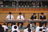 本年の講師は,ジャマイカ出身のジョン・ルーカスさん。2000年にALTとして初来日,いまはゴスペル歌手として活躍中です。ご自身の生い立ちやジャマイカについて紹介されたあと,素敵なゴスペルミュージックを披露していただきました。ゴスペルの魂は「愛」「希望」「喜び」「平和」であることを学んだあと,生徒全員が立ち上がっての大合唱! 元気あふれるひとときでした。