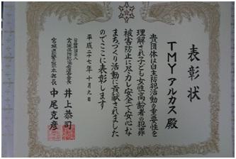 1 0月9日(金),平成27年全国地域安全運動宮城県大会が仙台市民会館にて開催され、TMY(富谷)アルカス(宮城県富谷高等学校生徒会)のこれまでの活動が宮城県警察より表彰されました。
