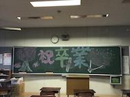 卒業式が終わり、教室を回ってみると黒板に「祝卒業」の文字と絵が書かれていました。各教室では涙ながらの一人一言が語られていたようです。