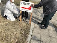 美術の先生と技師さんの協力のもと、来客駐車場への案内と駐車場から来客玄関までの案内掲示が設置されました。ありがとうございました。これで迷わず玄関までくることができるものと思います。