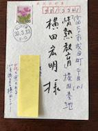 またまた、素敵なハガキを頂戴しました。宛名には富谷高校ではなく横田基地とありますが、郵便屋さんはしっかり届けてくれました。ハガキの裏には切手に8年8月8日の記念消印(パチパチパチ)が押されているという貴重なものでした。いつも私を勇気付けてくれる竹内さん、ありがとうございます。今日の河北新報に退職校長として名前が掲載され、あと少しだなという気持ちになりました。29日が離任式、30日に退職辞令を受けることになりますが、いろいろな方に応援していただいたことに感謝し、最後まで頑張りたいと思います。