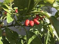 文化センターの道路を挟んだ向かい側に「見驚(けんきょう)」という野梅がたくさんの花をつけていました。青空に映えてとてもきれいでした。