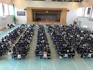 午前8時過ぎに昇降口で受付が始まり、検査室へ入場しました。