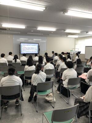 地域課題やSDGsに取り組んでいる見学先(企業や団体,自治体等)に実際に出掛けて,職員の方々からの講義やワークショップを通して,課題の見つけ方,分析と解決法などについて学びを深めました。今後の課題研究のために,大いに参考になりました。