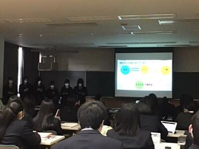 12月15日(木)5・6校時に宮城大学食産業学群教授の笠原紳先生と事業構想学群助教の中沢峻先生をお招きし,中間発表①を行いました。チーム内でグループの発表を行い,生徒同士で優秀なチームを投票しました。