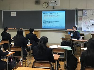 11月16日(木)、2学年T-time(総合的な探究の時間)における課題研究の一環で、「テーマ検討会+大学模擬授業」が行われました。県内7つの大学の9人の先生方を講師としてお招きし、5校時は生徒による研究企画書の発表、6校時はそれぞれの先生方からの講義という内容でした。