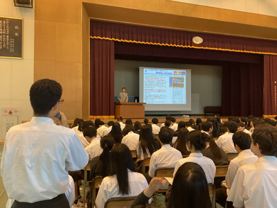 2年生がこれから富谷市に関する課題研究を始めるにあたり、富谷市の現状や課題を学ぶため、富谷市長若生裕俊様をお招きして講演会を開催しました。「住みたくなるまち日本一の実現に向けて」をテーマにした講演を拝聴することで、これから自分たちが行う課題研究のテーマ設定に対する一助となりました。