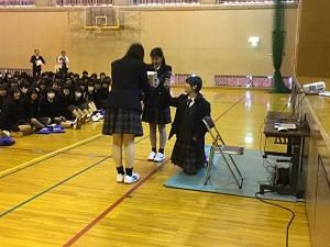 2月13日(木)3年生の出校日に合わせて,予餞会を行いました。各部から先輩たちへのメッセージ動画や,昨年転勤されたお世話になった先生方からの餞の言葉,そして,この3年間の行事活動の様子などスライドで紹介しました。その後,卒業生へ記念品を贈呈しました。