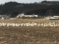 今日は大寒、学校では1・2年生が模擬試験でした。みんなどうだったでしょうか?私は用事があって登米まで行ってきました。帰りに白鳥を見に伊豆沼に立ち寄りましたが、今は餌付けをしていないので、昼間は田んぼに餌を採りに行っているので、伊豆沼には白鳥はいないとのことでした。対岸には栗駒山がきれいに見えていましたが、話の通り白鳥の姿は1羽も見ることができず、水鳥がいるのみでした。諦めて自宅へ向かう途中に、話の通り田んぼにたくさんの白鳥を見ることができました。中には4羽で求愛ダンス?をしている白鳥もいました。富谷に着く手前の大郷町の田んぼには数え切れないくらいの白鳥が餌をついばんでいる姿を見ることができました。