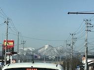 買い物に行く途中、道路正面に、泉ヶ岳が綺麗に見えていました。