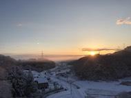 昨日の予報ほどではありませんでしたが、20センチほど降ったでしょうか。私は徒歩で学校へ向かいました。途中見えた、朝日と朝日に輝く木々はとてもきれいでした。