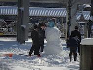 今日は始業時間を1時間遅らせることを決めていたため、混乱なく朝が始まりました。始業まで余裕があったので、生徒たちは中庭に巨大な雪だるまを作ったりして、雪と戯れていました。そのうち、雪で覆われた通路を除雪してくれる生徒の姿もありました。ありがとう!