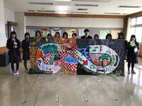 ・矢印の内側に,両国を象徴するものを描きました。富谷高校が描いたのは,日本地図,富士山,紅白の格子模様,竹,城、羽ばたく鶴です。鶴は折り紙から平和に発想を飛ばし,現在の世界でも戦時下にあるウクライナなどへのメッセージも込めています。SDGs12の達成のためには私達がユネスコの理念である「心の中に平和の砦を築いて」頑張らなくてはならないという思いを込めました。