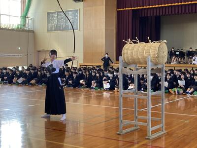 京劇では『覇王別姫』から虞姫の剣舞、『孫悟空』から悟空と白骨精の戦いのワンシーン、雑技は柔術、流星(ロープの先に錘をつけた武器)、ヘッドバランス、椅子芸などを鑑賞しました。京劇の華やかな衣装と独特の節回しや音楽、人間技とは思えないアクロバティックな妙技の数々、瞬時に次々変わる面など、日頃目にすることのできない興行の数々に、あっという間の90分でした。演者の方が客席に下りてきて握手をしたり、チャレンジコーナーでは生徒が雑技やコミカルショー、京劇のワンシーンに参加したりするなど、客席と一体となった親しみのある会となりました。また、多くの保護者の皆様も鑑賞していただきました。